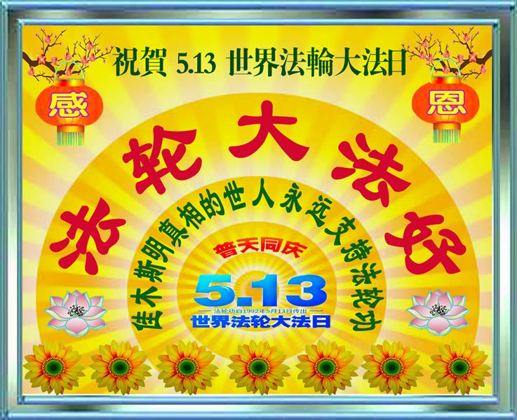 洪传大法三十年, 救度众生回家园。 普天同庆盛世开, 福满人间新宇来。 佳木斯市一女大法弟子敬上 黑龙江省佳木斯市汤原县一大法弟子及全家恭祝慈悲伟大的师尊生日快乐!普天同庆世界法轮大法日!