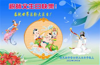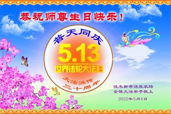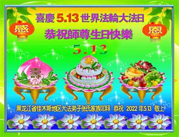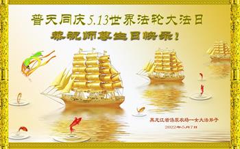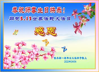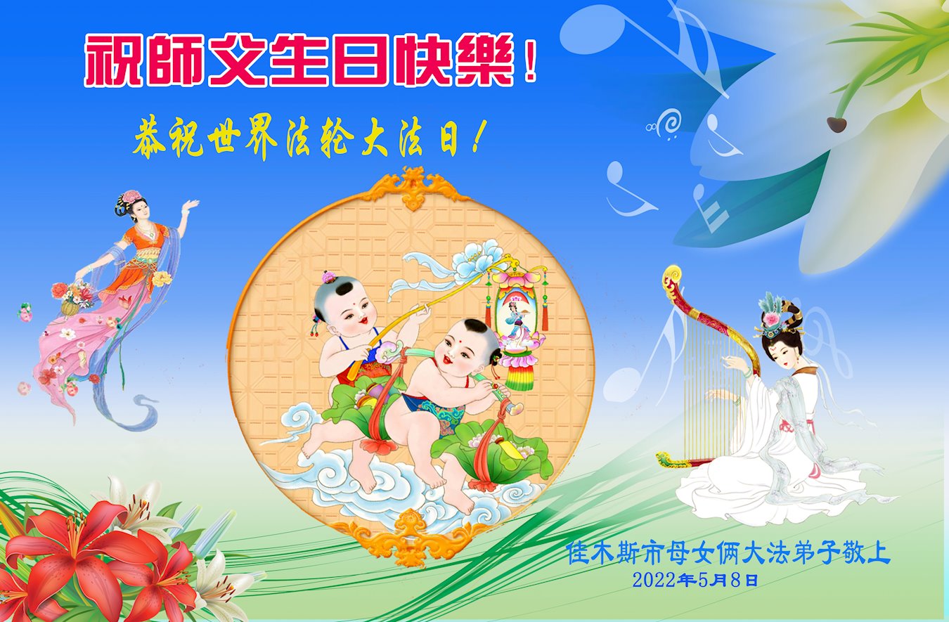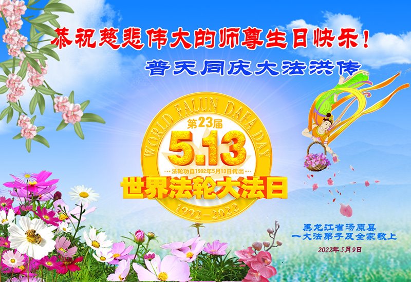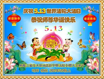 【明慧网二零二二年五月十三日】 黑龙江省佳木斯大法女弟子及家人贺祝师尊生日快乐!
