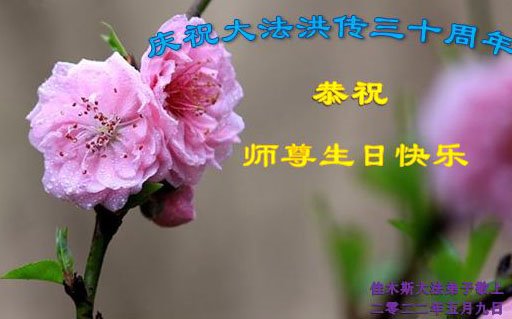 在五一三到来之际,祝恩师生日快乐!贺师尊传大法三十周年!在今后的日子里,我要做好三件事,圆满随师还。 黑龙江省佳木斯郊区大法弟子及家人敬祝师父生日快乐!叩拜师父!