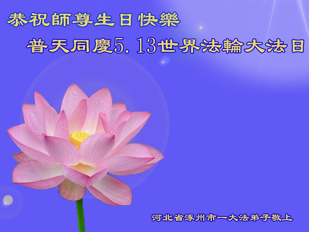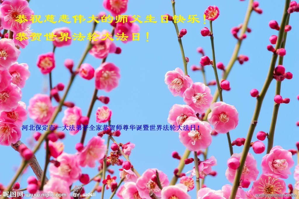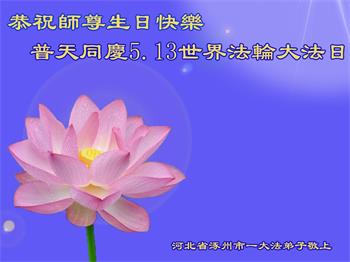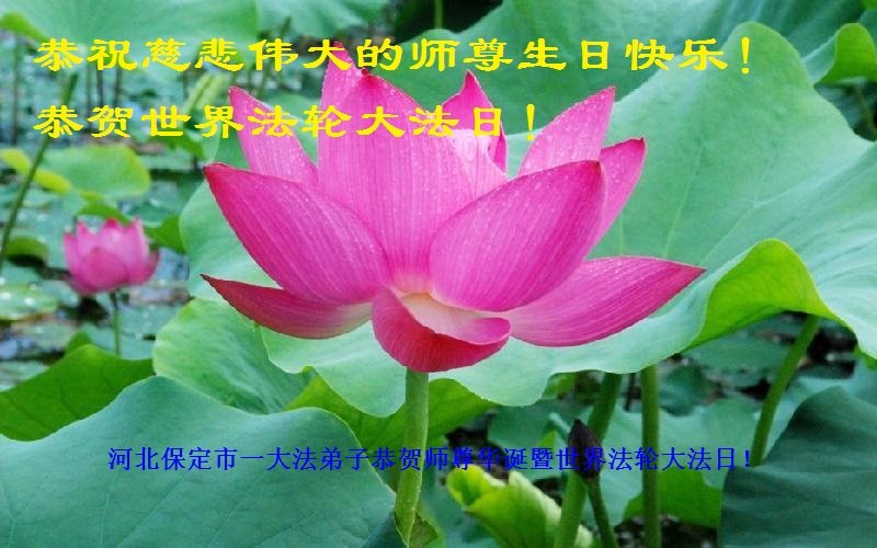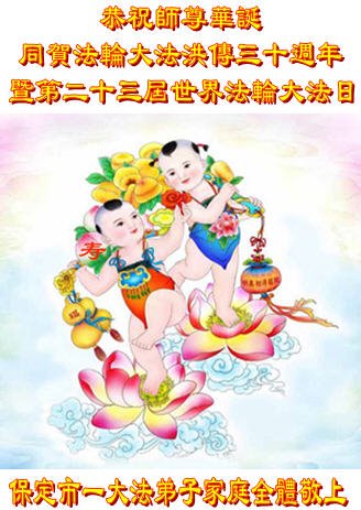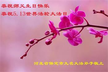 河北保定市一大法弟子全家恭贺师尊华诞暨世界法轮大法日!