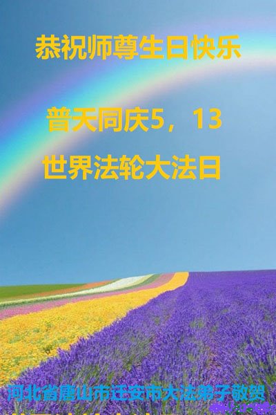 恭祝慈悲伟大的师尊生日快乐!弟子叩谢师尊的慈悲救度! 师尊您辛苦了!跪拜师恩! 河北省唐山市迁安市大法弟子敬贺法轮大法日!