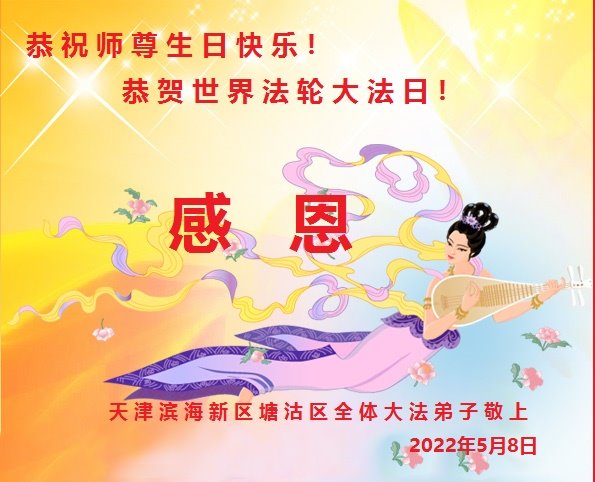 恭祝师尊生日快乐!感恩伟大的师尊慈悲苦度!不断精進,兑现大法弟子的使命。 合十 二零二二年五月十日 天津滨海新区大港街大法弟子恭贺世界法轮大法日!
