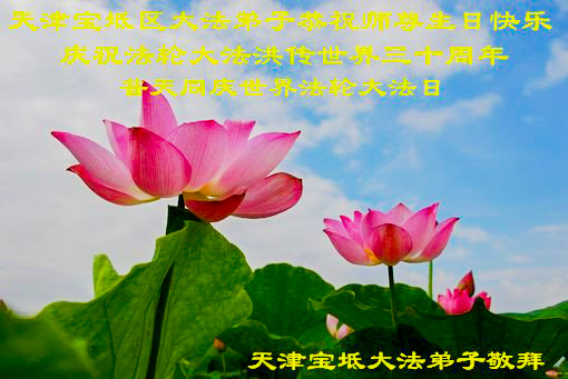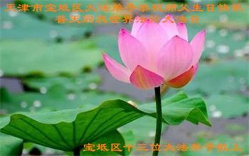 天津宝坻区大法弟子庆祝法轮大法弘传三十周年!普天同庆世界法轮大法日! 天津宝坻区大法弟子敬上 天津市北辰区一老年学法小组全体大法弟子恭祝师父七十一华诞!