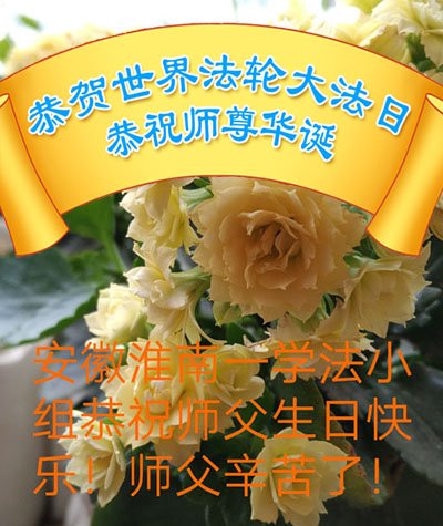 安徽淮南大法弟子恭祝师尊生日快乐!恭贺世界法轮大法日!