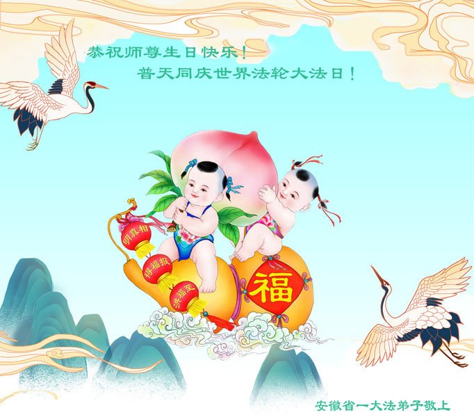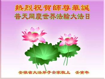 安徽省大法弟子全家祝贺师尊华诞同庆世界法轮大法日!