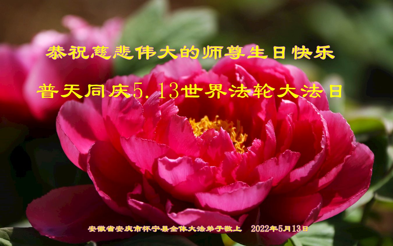 安徽省安庆市怀宁县全体大法弟子祝贺法轮大法洪传30周年!普天同庆5.13世界法轮大法日! 感恩师尊慈悲救度!师父您辛苦了! 安徽省安庆市怀宁县全体大法弟子敬上 安徽合肥大法弟子祝贺世界法轮大法日!恭祝师尊生日快乐!
