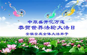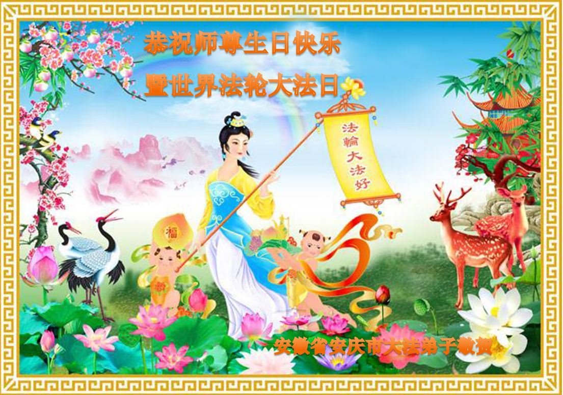 安徽安庆全体大法弟子恭贺世界法轮大法日! 安徽省安庆市大法弟子恭祝师尊生日快乐暨世界法轮大法日!