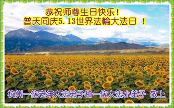 江苏省杭州一位老年大法弟子和一位大法小弟子恭祝师尊生日快乐!