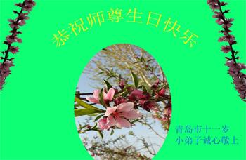 青岛市一名十一岁大法小弟子遥祝师父生日快乐!师父您好! 二零二二年五月八日敬上 辽宁省沈阳市一大法小弟子恭祝师父生日快乐!