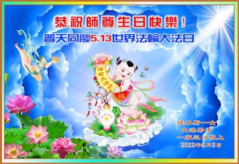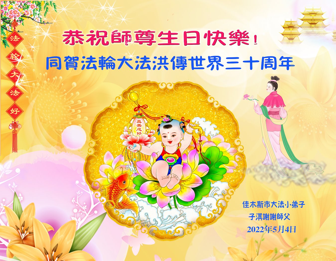 【明慧网二零二二年五月十三日】 四川南充一大法小弟子恭贺师尊华诞暨法轮大法日!