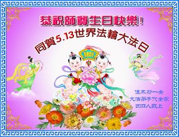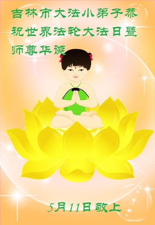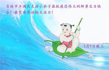 吉林市丰满区大法小弟子恭祝师父生日快乐!恭贺世界法轮大法日! 5月9日敬上 吉林市大法小弟子恭祝世界法轮大法日!