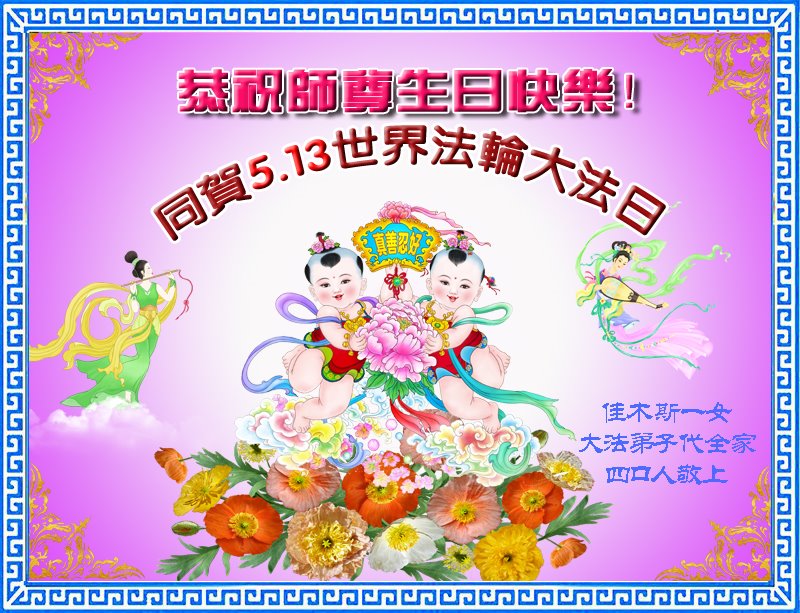 吉林市大法小弟子恭祝世界法轮大法日!恭祝师父生日快乐! 黑龙江省哈尔滨市南岗区大法弟子及家中大法小弟子恭贺世界法轮大法日