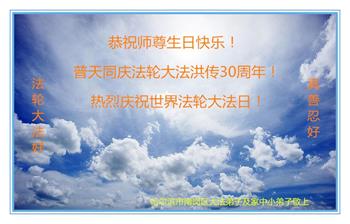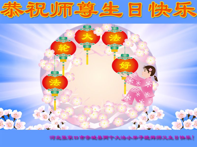 恭祝师尊生日快乐!普天同庆世界法轮大法日!热烈庆祝大法洪传30周年! 河北省张家口赤城县一家两个大法小弟子恭祝师父生日快乐!