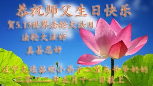 恭祝师父生日快乐! 贺5.13世界法轮大法日 法轮大法好 真善忍好 辽宁大连旅顺大法小弟子二宝与爷爷奶奶 二零二二年五月十一日敬上 黑龙江省佳木斯大法小弟子恭祝师父生日快乐!