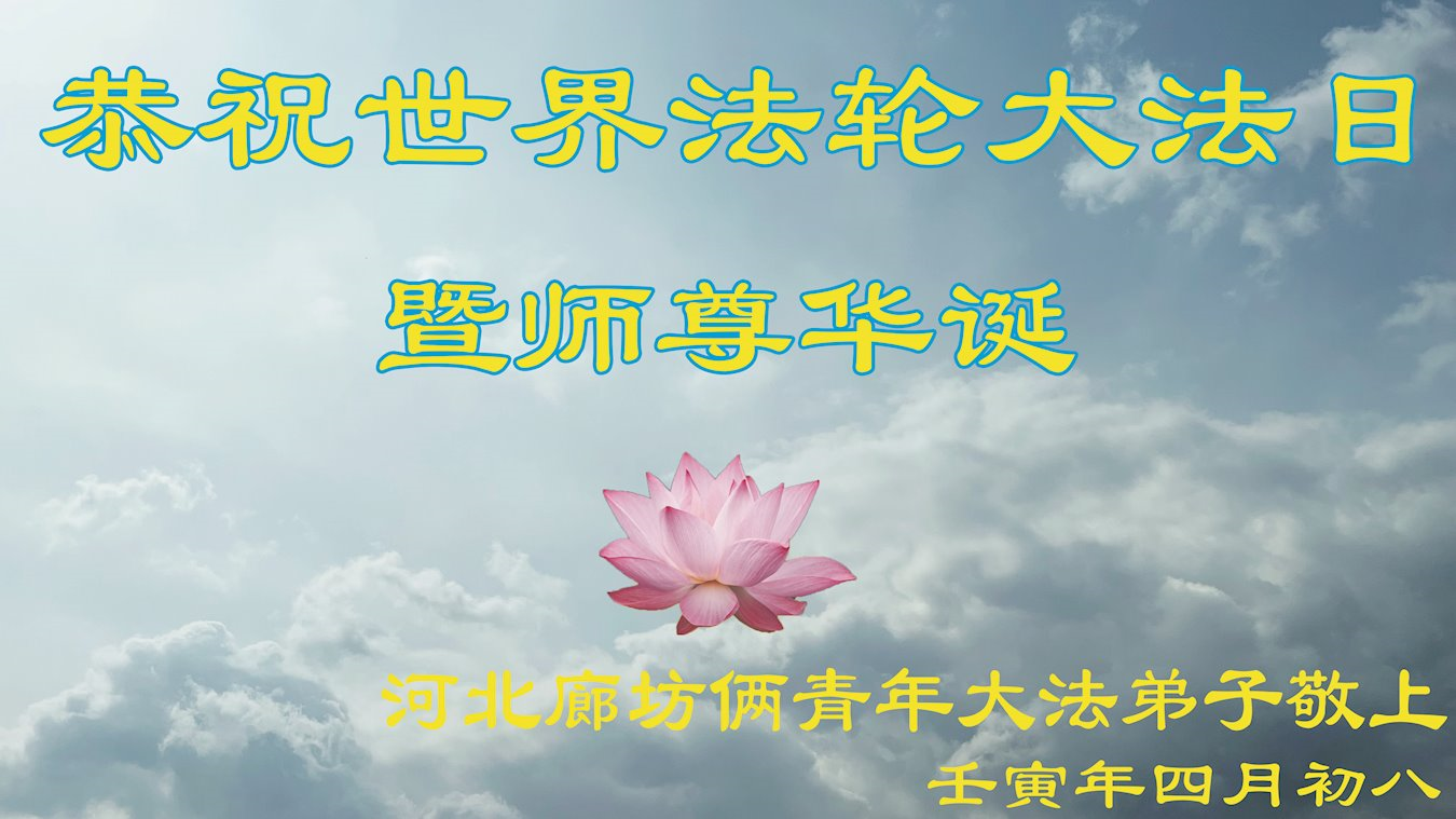 河北廊坊管道局三人学法小组大法弟子敬上 二零二二年五月十三日 河北廊坊俩青年大法弟子恭贺世界法轮大法日暨师尊华诞!