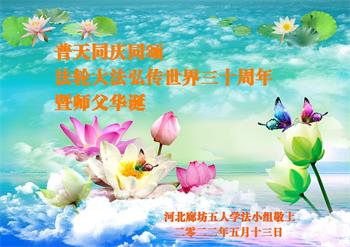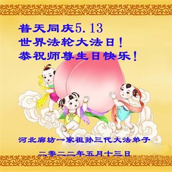河北廊坊市一家三位大法弟子恭贺世界法轮大法日!