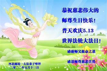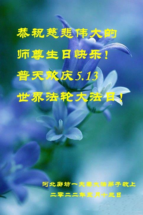河北廊坊一夫妻俩大法弟子敬上 二零二二年五月十三日 河北廊坊一大法弟子恭祝慈悲伟大的师尊生日快乐!庆祝世界法轮大法日!