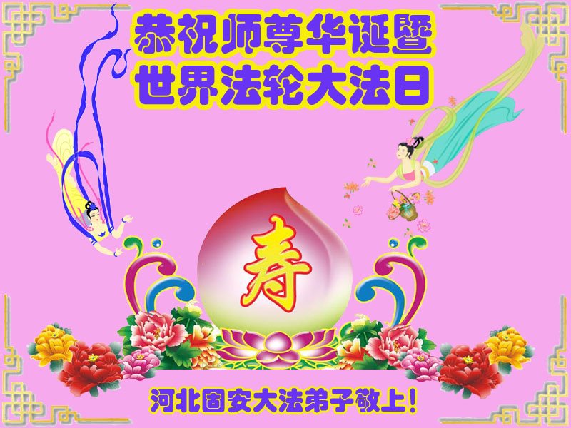 师尊您好!我们在此恭祝您生日快乐!师父您辛苦了!谢谢师父! 河北固安大法弟子恭祝师尊华诞!
