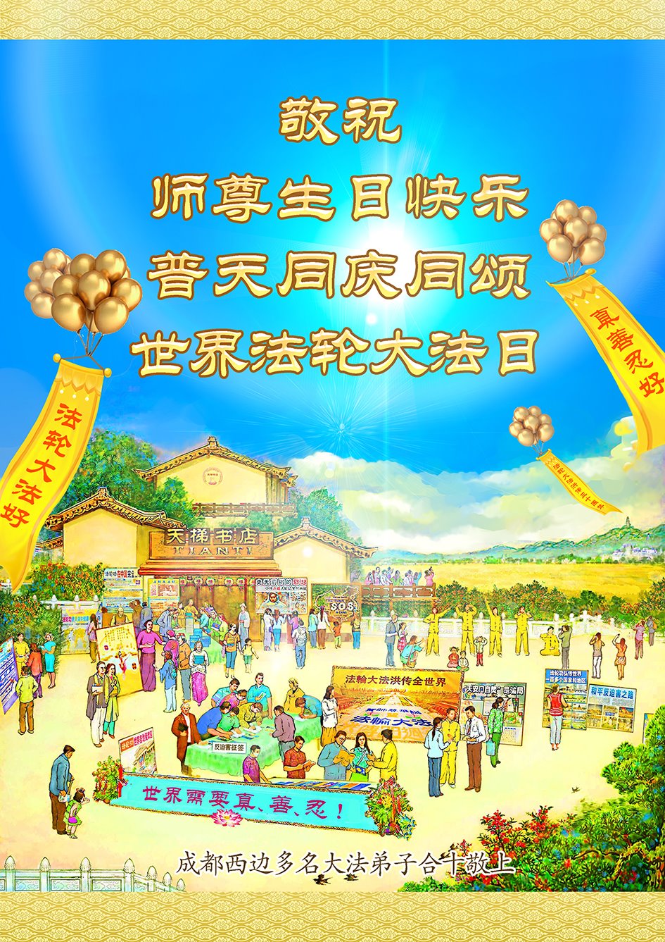 恭贺5.13世界法轮大法日! 四川成都市西边多名大法弟子恭贺法轮大法日!恭祝师父生日快乐!