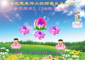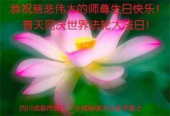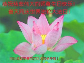 四川省成都西北桥一大法弟子恭祝师尊生日快乐!
