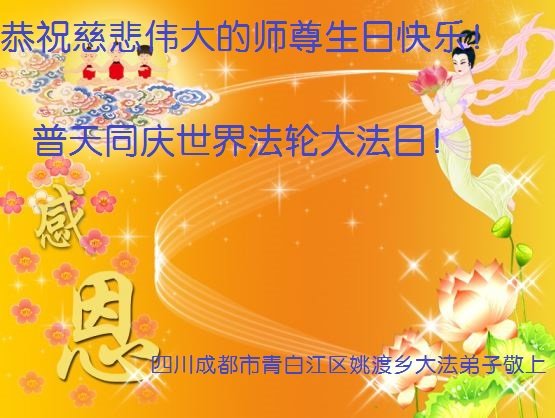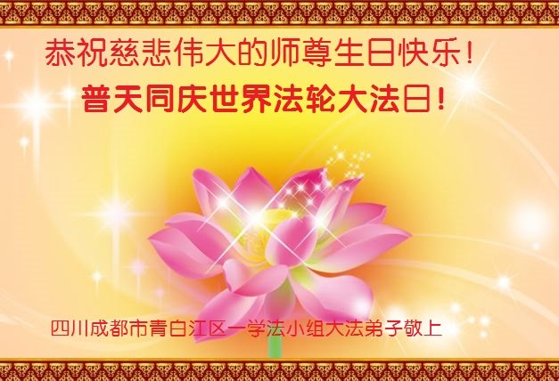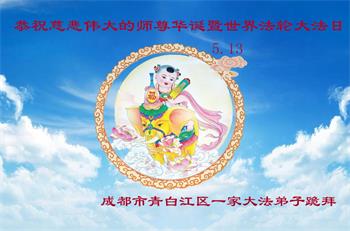 四川省成都市青白江区一家大法弟子恭祝慈悲伟大的师尊七十一华诞暨世界法轮大法日!