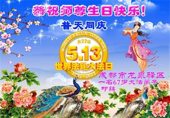 四川省成都市龙泉驿区一名67岁大法弟子普天同庆世界法轮大法日!