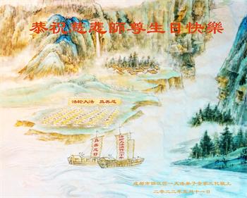 四川省成都市青白江区大法弟子恭祝慈悲伟大的师尊生日快乐!