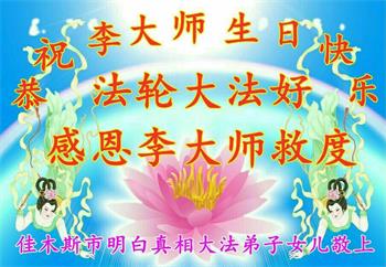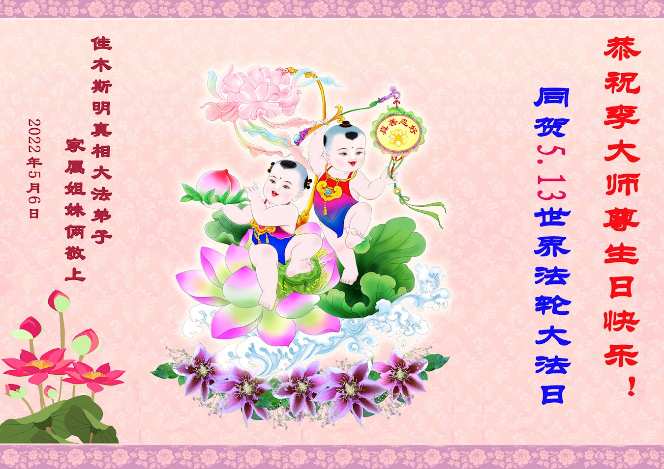 黑龙江省佳木斯大法弟子家属明真相姐妹俩恭祝李大师生日快乐!