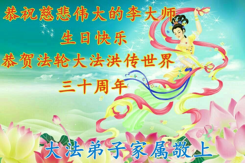我是大法弟子的弟弟,我一家人非常相信“法轮大法好,真善忍好”,常念诵这九字真言。在这十恶毒世,感恩创世主对我一家人的救度、保护!在此我们夫妇携带儿女恭祝李大师生日快乐!并祝法轮大法弘传世界三十周年! 中原油田一大法弟子及全家族明真相的八十余人恭贺法轮大法洪传世界三十周年!