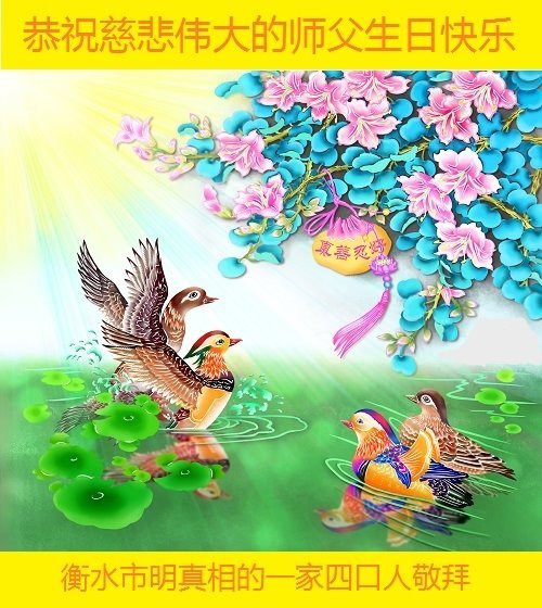 恭贺世界法轮大法日! 恭祝慈悲伟大的师父生日快乐! 恭贺法轮大法洪传三十周年! 感恩师尊慈悲救度!法轮大法好,真善忍好! 黑龙江省佳木斯市大法弟子女儿敬上 二零二二年五月八日 河北省衡水市明真相的一家四口人恭祝慈悲伟大的师父生日快乐!