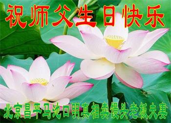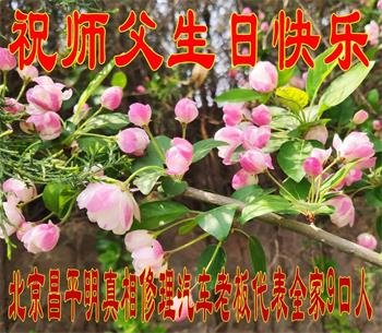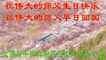 北京昌平明真相环卫工人代表全家恭祝伟大的师父生日快乐!