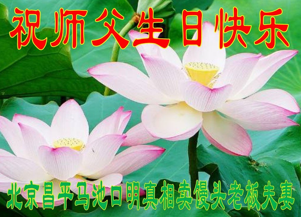 我是一名环卫工人,在大法洪传三十周年的日子里,我代表我们全家向伟大的师父问好!祝伟大的师父生日快乐!早日回国! 2022年5月7日 北京昌平明真相做刚窗生意的夫妻祝师父生日快乐!