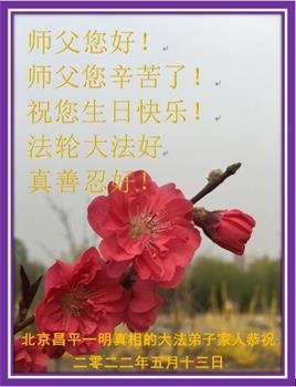 湖南省祁东县大法弟子一家的亲戚敬上 二零二二年五月九日 北京昌平一明真相的大法弟子家人恭祝师父生日快乐!
