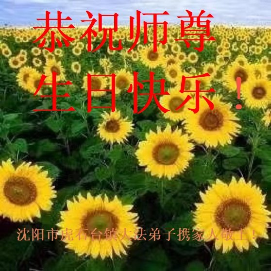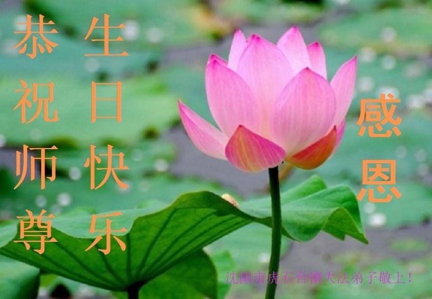慈悲伟大的师尊您好!在这普天同庆、同祝、同颂的美好节日里,弟子感恩师尊的慈悲苦度!弟子叩拜师尊! 在今后的日子里,弟子一定精進不怠,兑现誓约,圆满随师回家! 辽宁省沈阳市一资料点全体大法弟子恭祝师尊生日快乐!