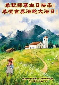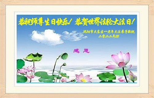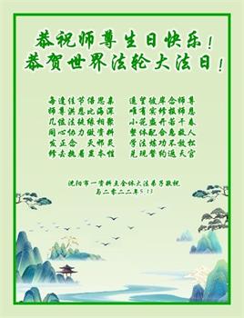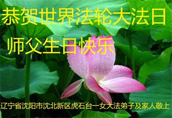 恭祝师尊华诞快乐! 辽宁省沈阳市沈北新区虎石台一女大法弟子及家人恭贺世界法轮大法日!