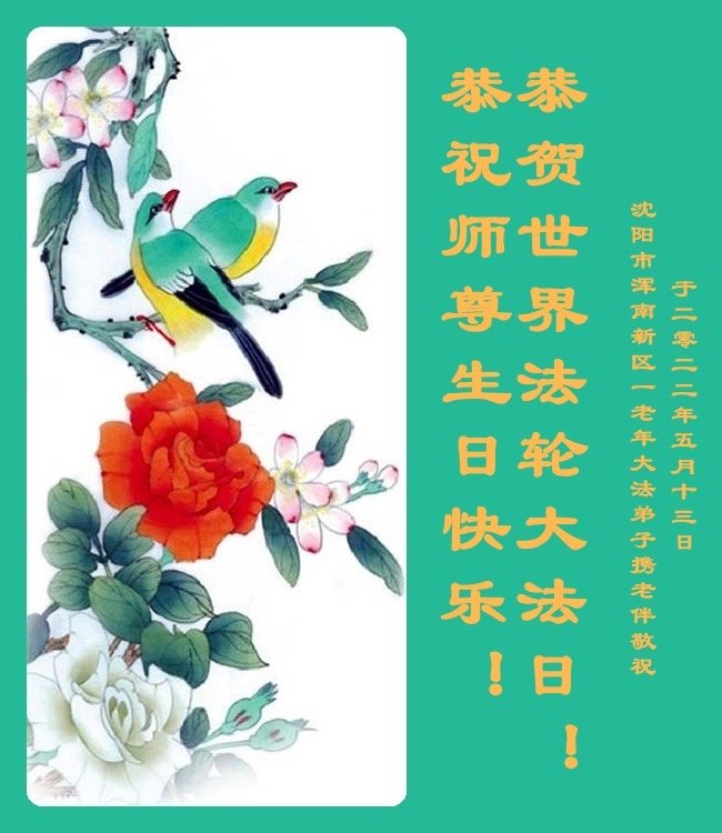 庆祝世界法轮大法日!恭祝慈悲伟大的师尊华诞快乐!感恩师尊的慈悲救度! 辽宁省沈阳市大东区一老年大法弟子恭祝师尊生日快乐!