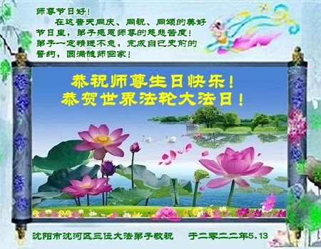 辽宁省沈阳市沈河区三位大法弟子恭祝师尊生日快乐!