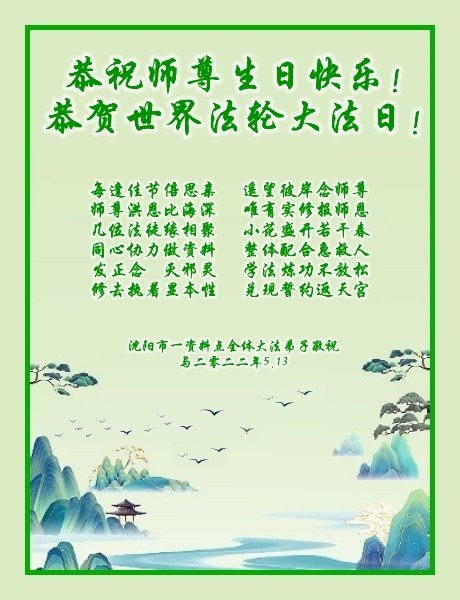 【明慧网二零二二年五月十三日】 辽宁省沈阳市青年大法弟子恭祝慈悲伟大的师尊生日快乐!