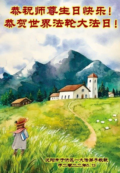 在这普天同庆的时刻,我们将随师法正人间,回首二十三年的正法路,无比感恩师尊的慈悲救度。在这大法洪传三十周年之际,我们辽中区全体大法弟子恭祝慈悲伟大的师尊生日快乐!我们唯有精進,精進,再精進,以回报师尊的浩荡洪恩。 生命的永恒 坠落在红尘中漂泊 找不到生命的归宿 为名利拼搏 被情欲缠索 徒增暮年的悲哀与失落 无望中仰望苍穹 何处才是人生苦苦寻觅的避难所 忽闻天外传来创世主的呼唤 法轮大法唤醒了沉睡中的你我 真善忍的光芒驱散了迷茫中的忧伤与苦涩 从此不再徘徊失去纯真的险坡 返本归真才是生命永恒的归属 沐浴在师尊的浩荡洪恩中 我们终于寻回了生命的永恒 叩谢恩师的慈悲苦度 我们只有精進实修 同您一起回归日夜期盼的天国 辽中区全体大法弟子敬上 辽宁省沈阳市辽中区八十岁大法弟子恭祝师尊生日快乐!