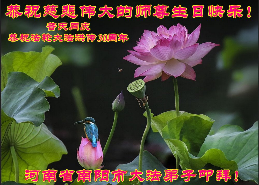 普天同庆世界法轮大法日! 河南省南阳市大法弟子恭贺世界法轮大法日!