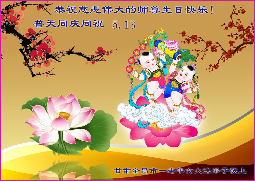 甘肃兰州市大法弟子恭祝师尊生日快乐! 甘肃庆阳一家大法弟子恭祝师尊生日快乐暨法轮大法日!