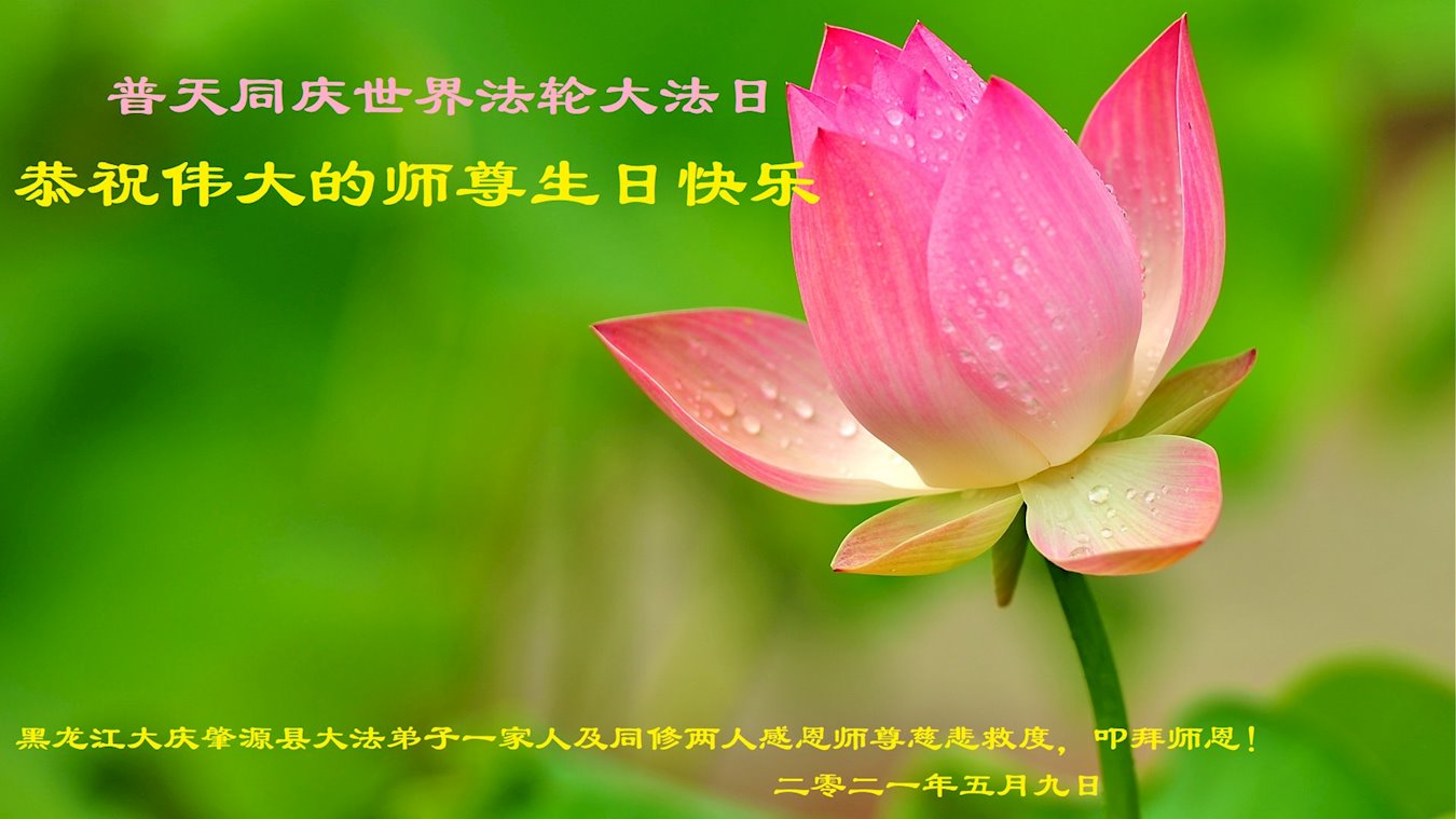 长春、大庆母女大法弟子恭祝慈悲伟大的师父生日快乐! 历经二十多年的学法修炼,我们越来越感到法的珍贵,师父的慈悲、伟大;无论修炼的路还有多长,我们都会坚定的走下去,不负使命,跟师父回家。 长春、大庆母女大法弟子敬祝 二零二二年五月八日 黑龙江省大庆市一家大法弟子恭贺法轮大法日!恭祝师尊生日快乐!