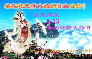 【明慧网二零二二年五月十三日】 黑龙江大庆市一大法弟子恭祝师尊生日快乐!庆贺世界法轮大法日!