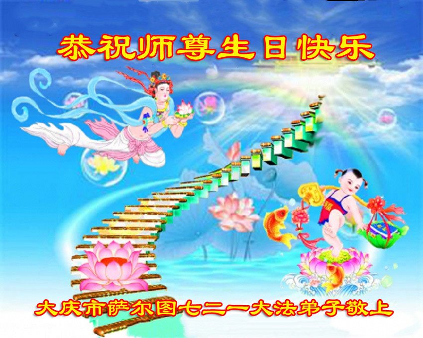 恭祝师尊生日快乐! 叩拜师尊,感恩师尊慈悲救度! 黑龙江省大庆市一家三位大法弟子敬上 黑龙江大庆大法弟子恭贺世界法轮大法日暨师尊父华诞!弟子要好好修炼。