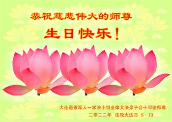 辽宁省大连退役军人一学法小组大法弟子恭祝慈悲伟大的师尊生日快乐!