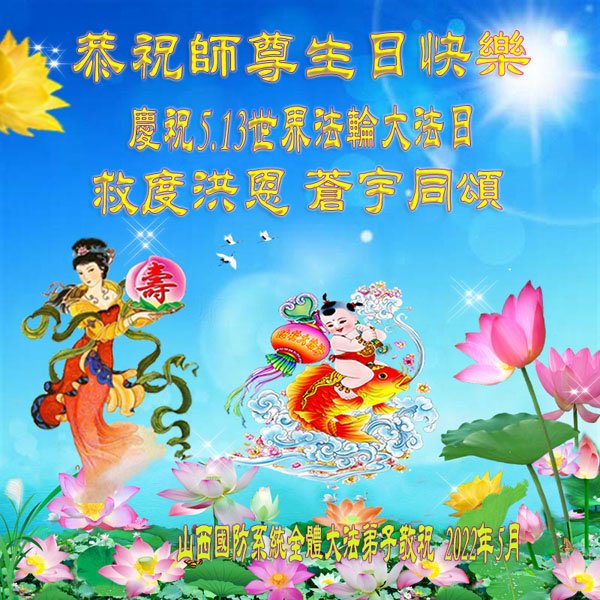 原成都军区大法弟子恭祝师尊生日快乐!恭贺第二十三届世界法轮大法日! 山西国防系统全体大法弟子恭祝慈悲伟大的师尊生日快乐!恭贺世界法轮大法日!庆祝法轮大法洪传三十周年!