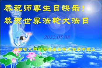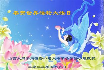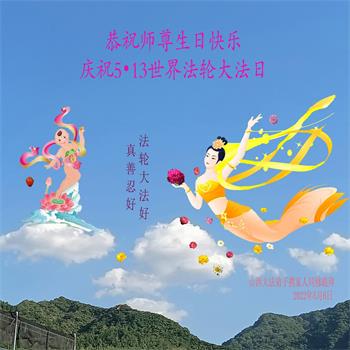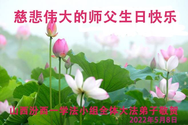 【明慧网二零二二年五月十三日】 山西省临汾市汾西县一学法小组全体大法弟子恭祝师尊生日快乐!恭贺世界法轮大法日!