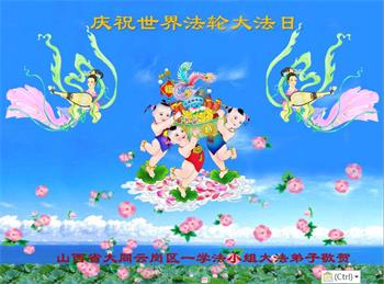 恭贺法轮大法日暨师尊华诞! 恭贺法轮大法洪传三十周年! 山西大法弟子 |