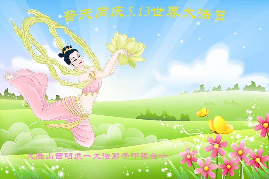 在这个特殊的日子里,首先恭祝师尊生日快乐!感恩慈悲伟大的师父救度。感谢慈悲伟大的师父的一路看护,一路陪伴,弟子才能在证实法的路上平稳的走到今天。今后,弟子更要做好三件事,多学法、多救人。跟师父回家。 山西大法弟子见贤恭贺法轮大法日!