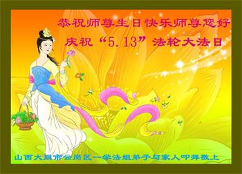 山西省大同市云岗区一学法组全体大法弟子与家人恭祝师尊生日快乐!恭贺世界法轮大法日!